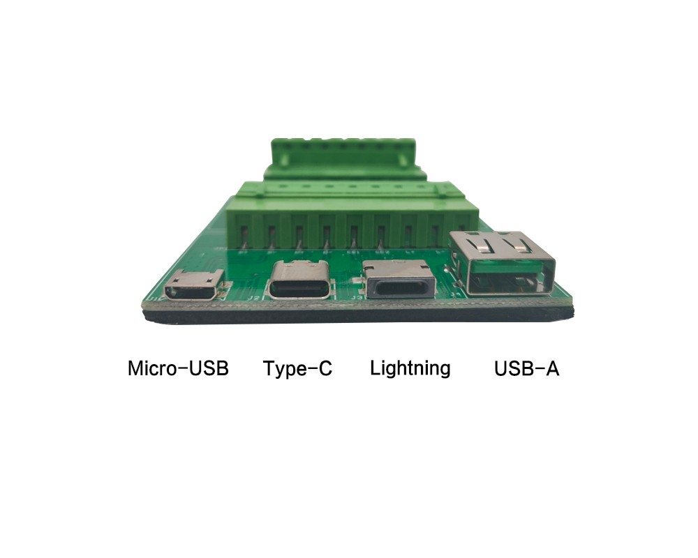 本產(chǎn)品為CH9722P標配轉接板,可進(jìn)行USB口、A口以及C口和Lightning口的快充測試,自帶蘋(píng)果解碼芯片